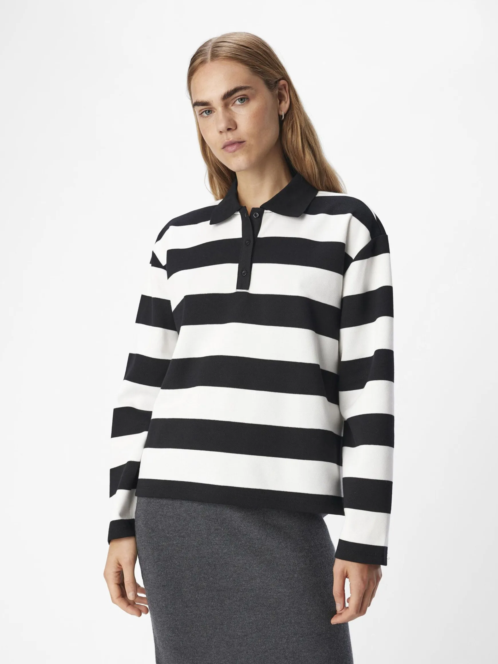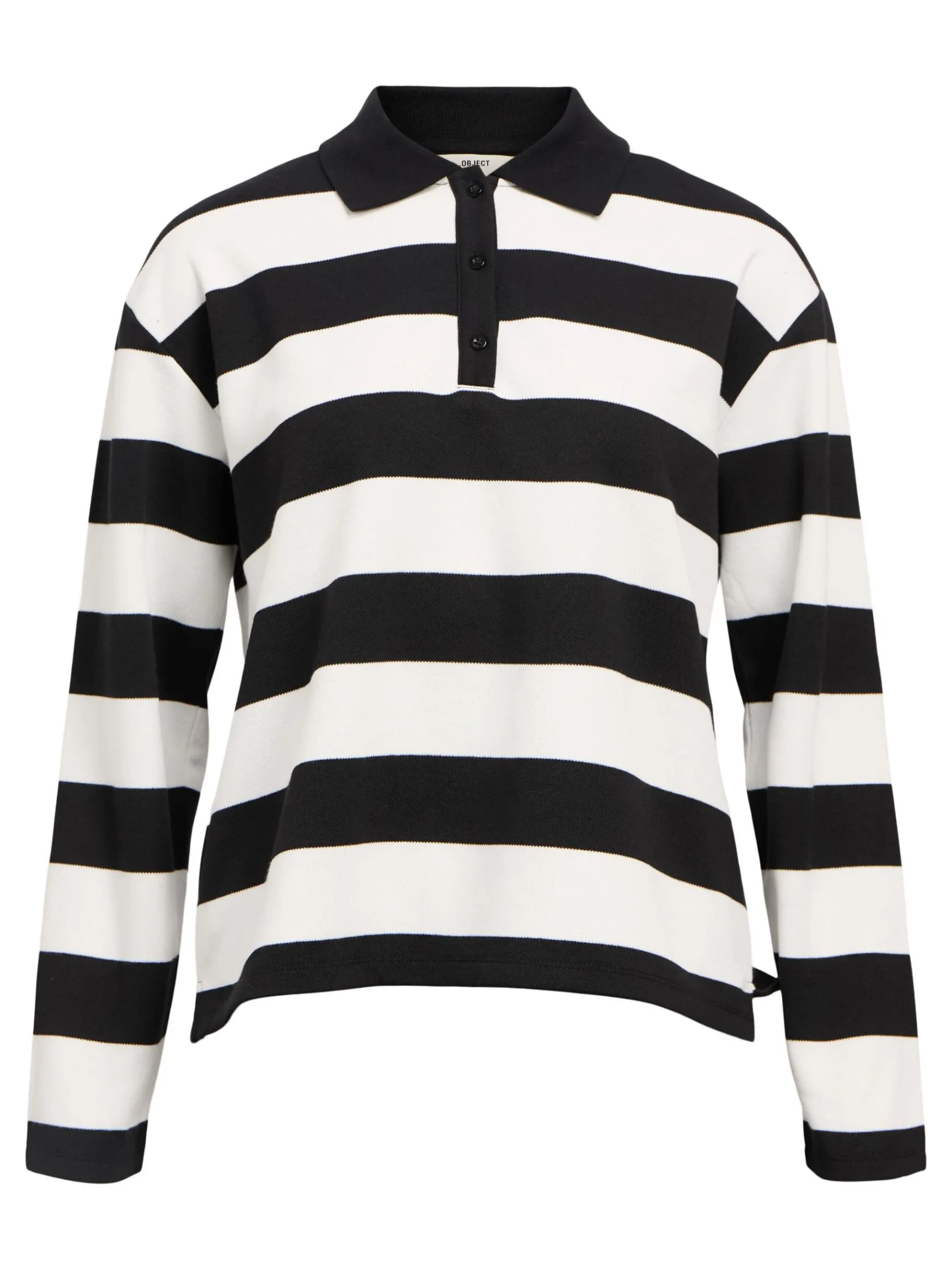– Stribet langærmet poloshirt- Polokrave- Sænkede skuldre- Knapstolpe med 3 knapper- Almindelig pasformStylenavn: OBJM…