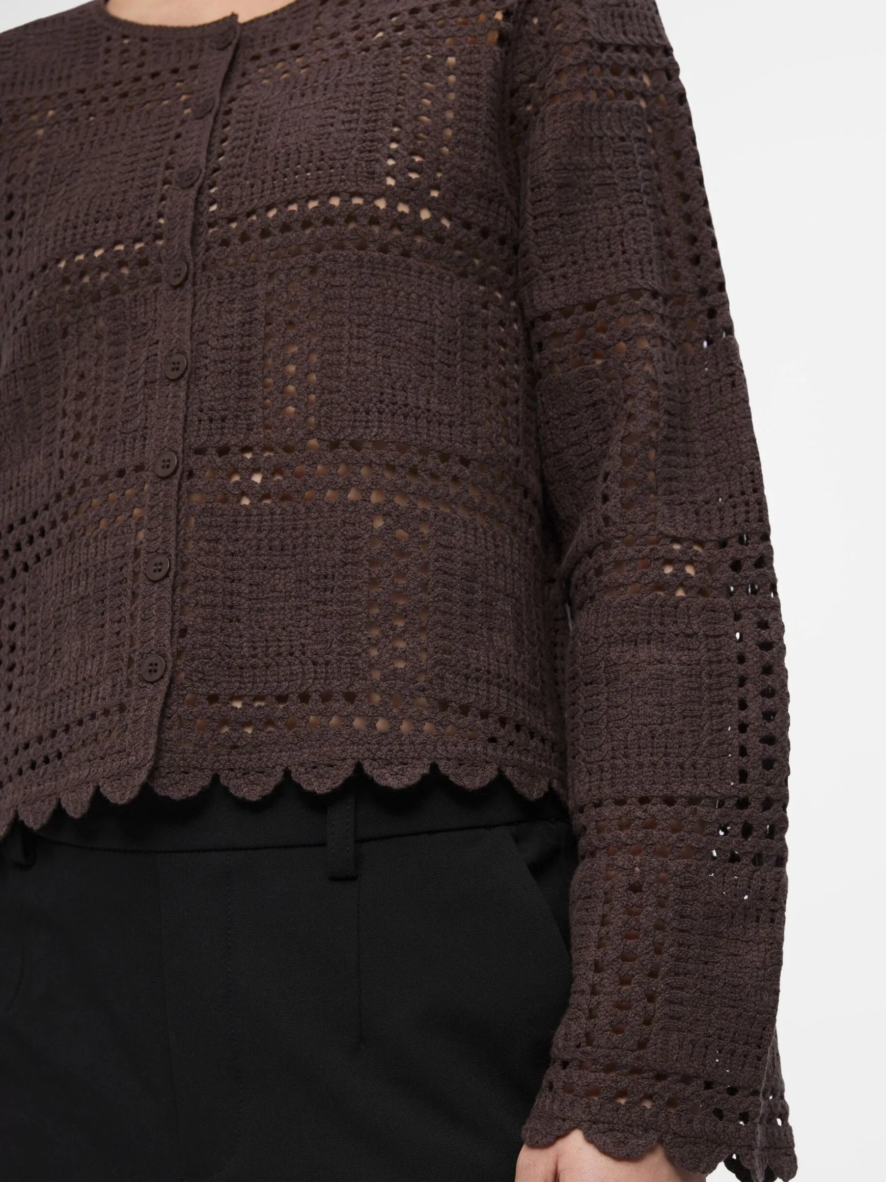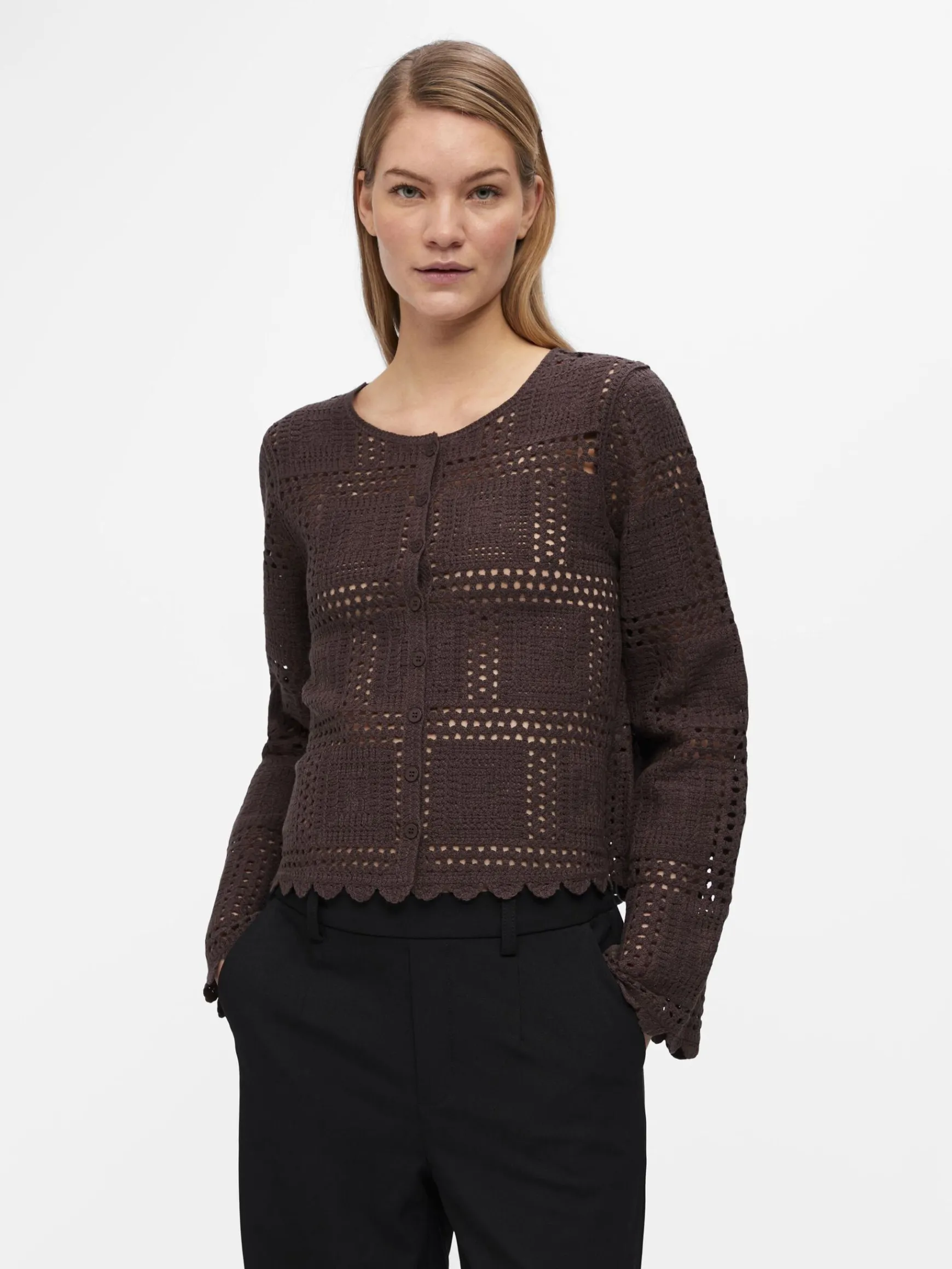 – Cardigan i åbenvævet strik- Bølgekant- Lange ærmer- Knapper foran- Almindelig pasformStylenavn: OBJORELLA