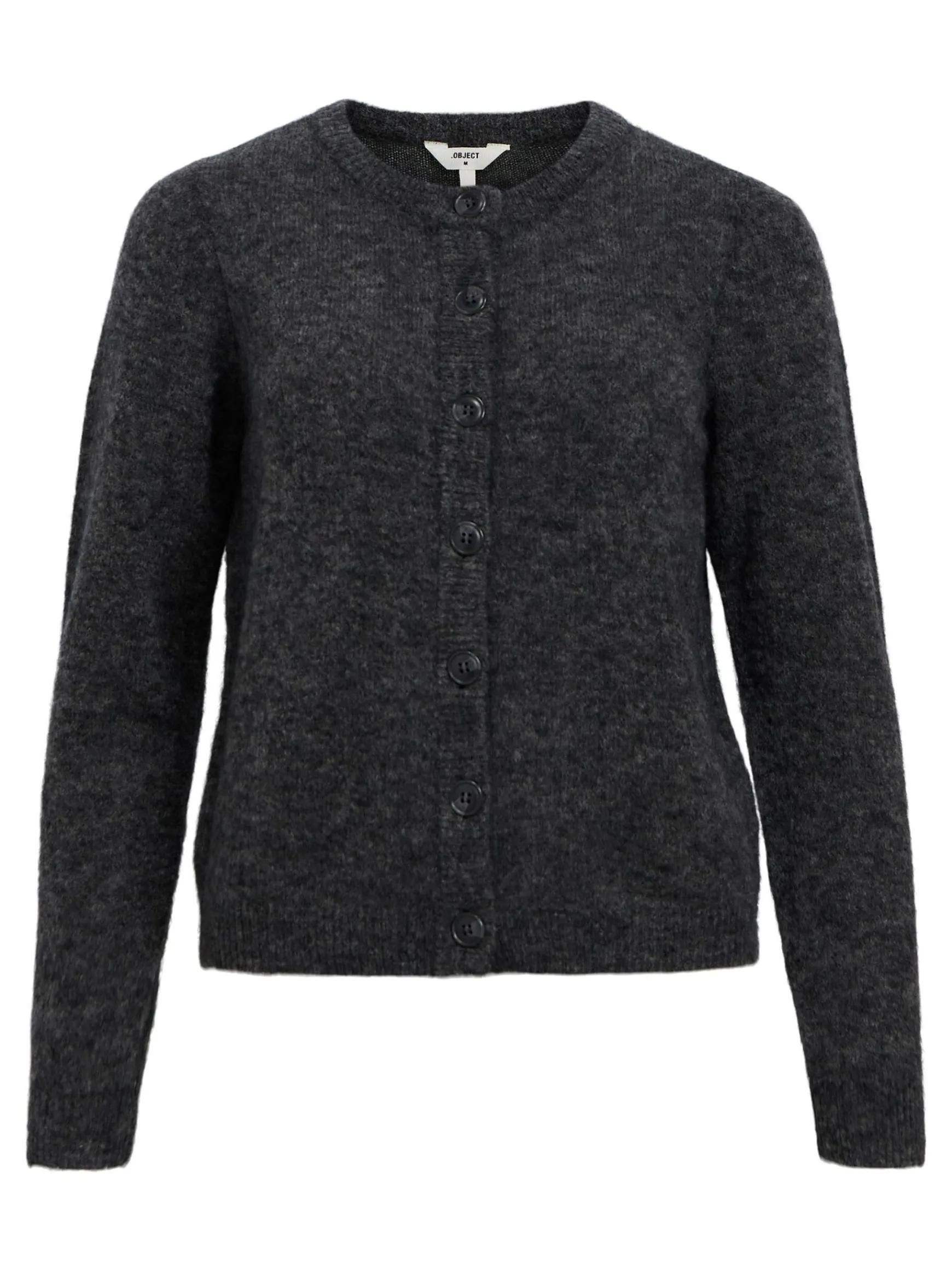 – Kort cardigan i mohair-uldblanding- Meleret strik- Rund hals- Lange ærmer- Ribstrikket kant- Knapper foran- Regular fit