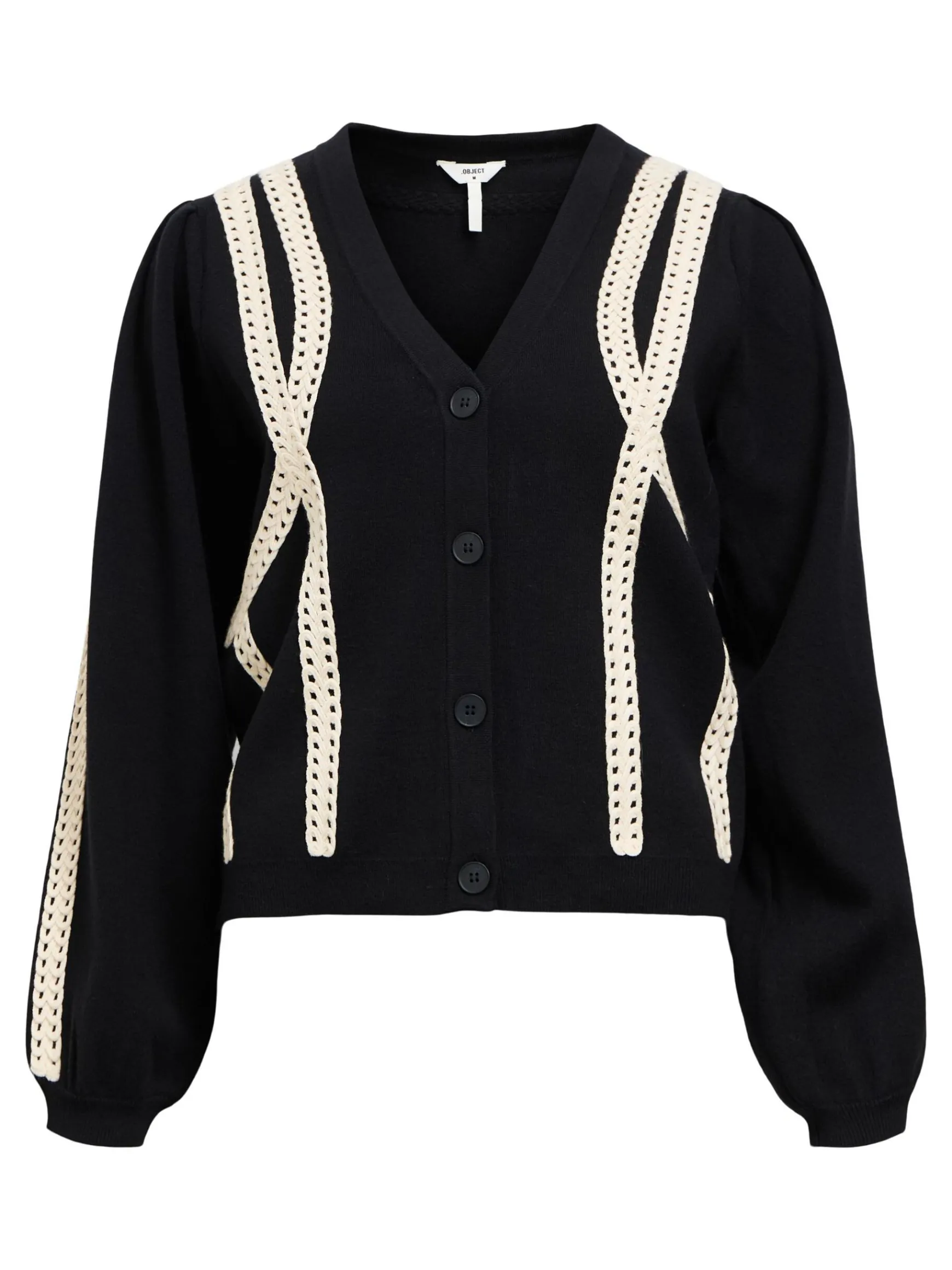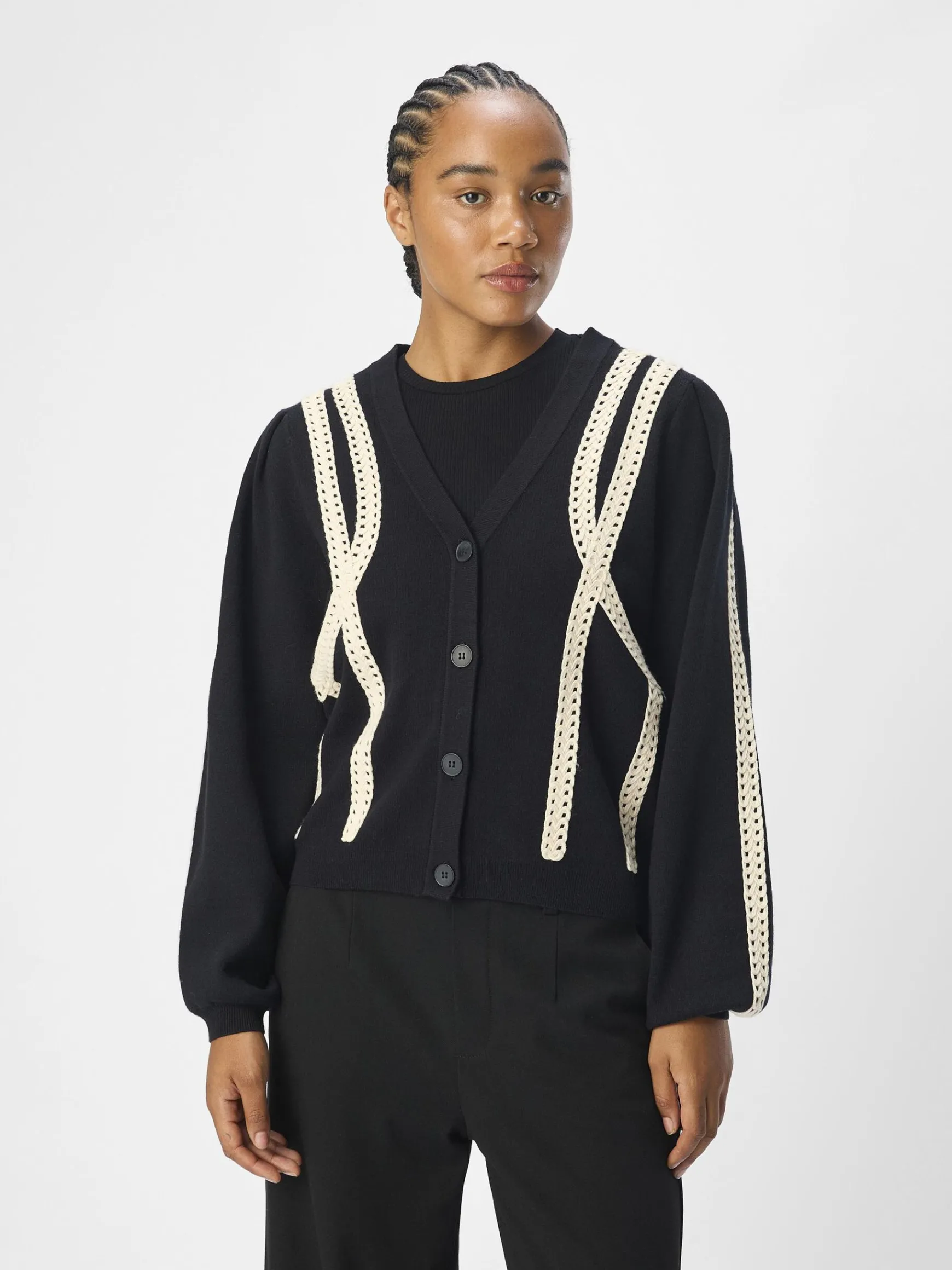 – Cardigan med V-udskæring- Detalje med nåledråbe- Plisseringer i skuldrene- Lange voluminøse ærmer- Knapper foran- Almindelig pasform