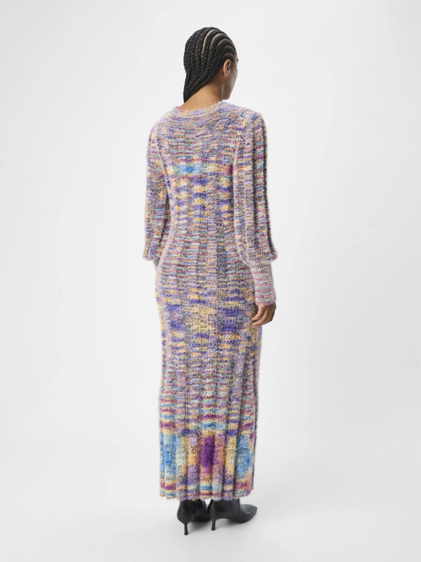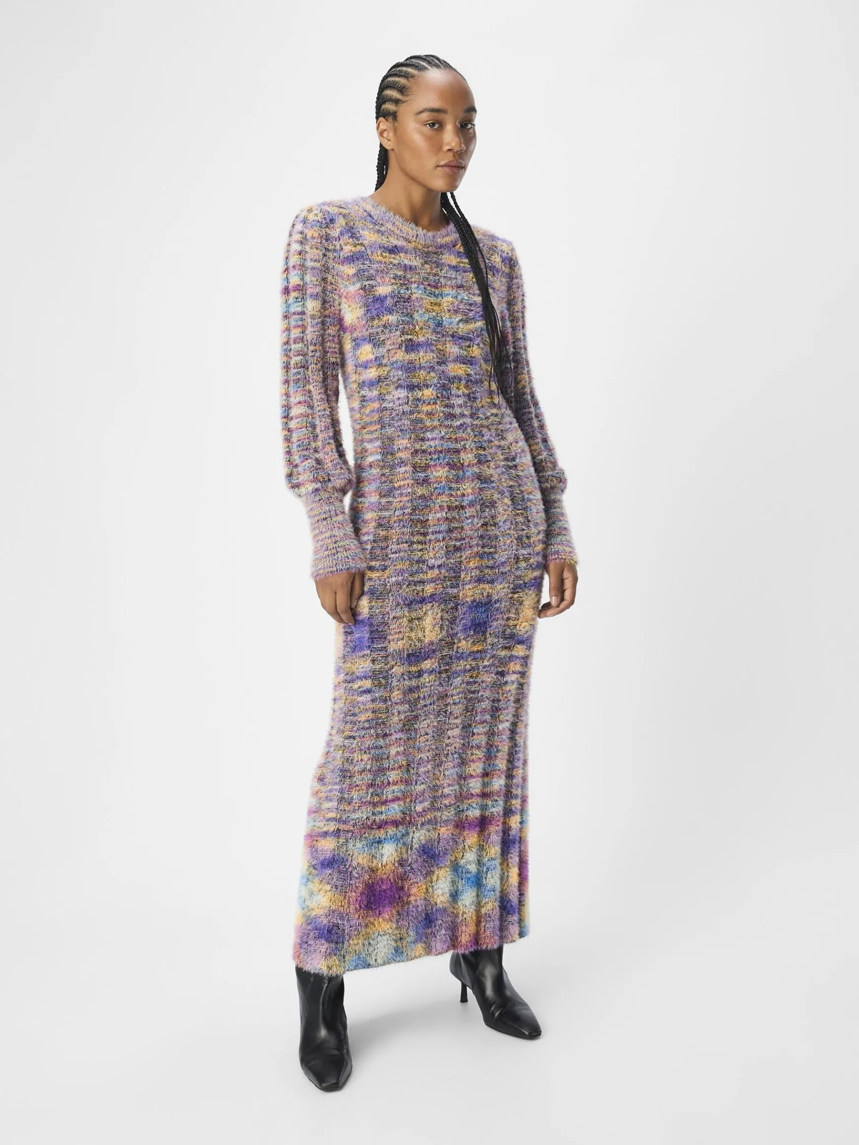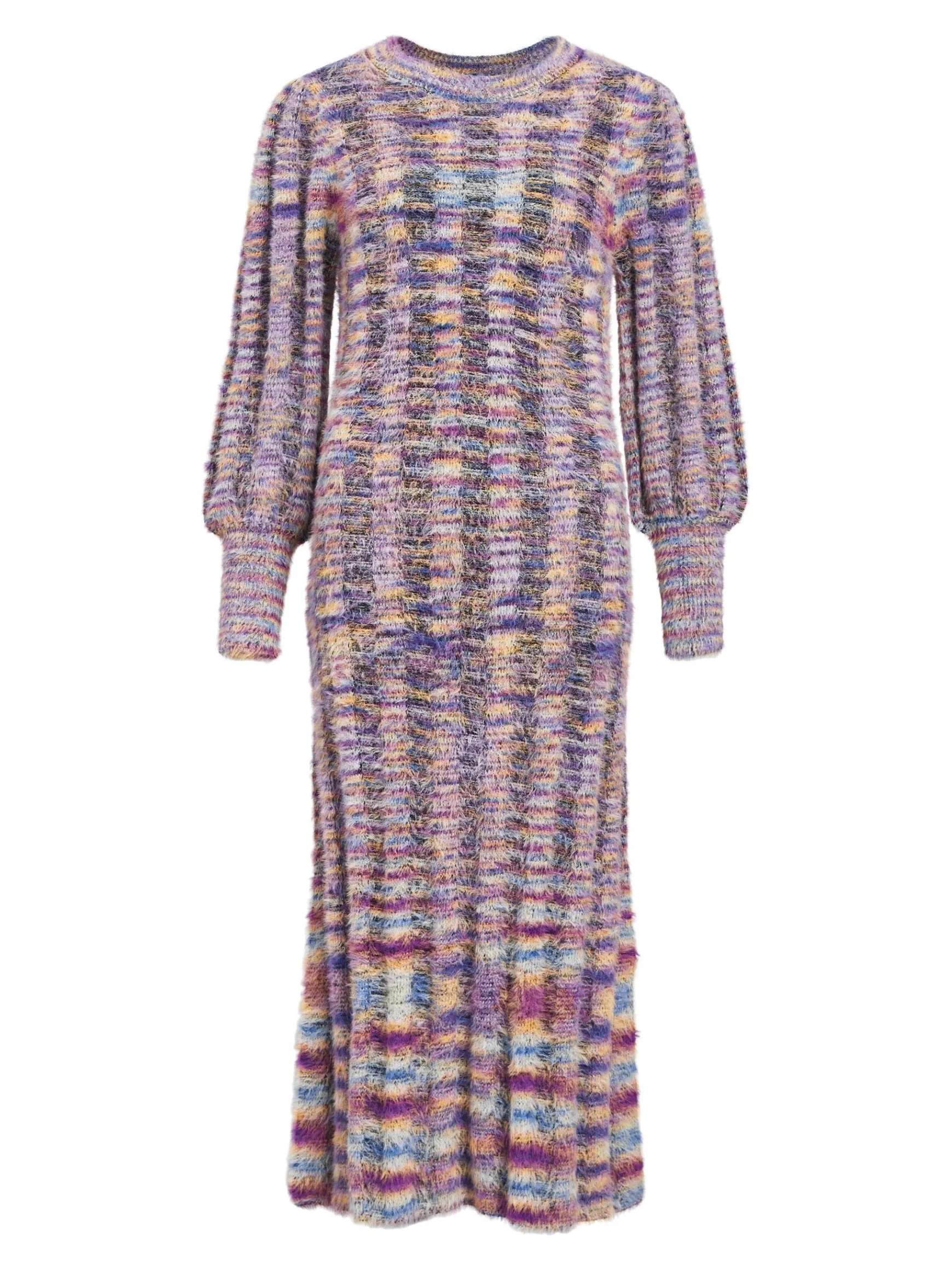 – Strikket maxikjole- Rund halsudskæring- Lange ballonærmer- Lange tætsiddende ærmekanter- Vid kant- Almindelig pasform
