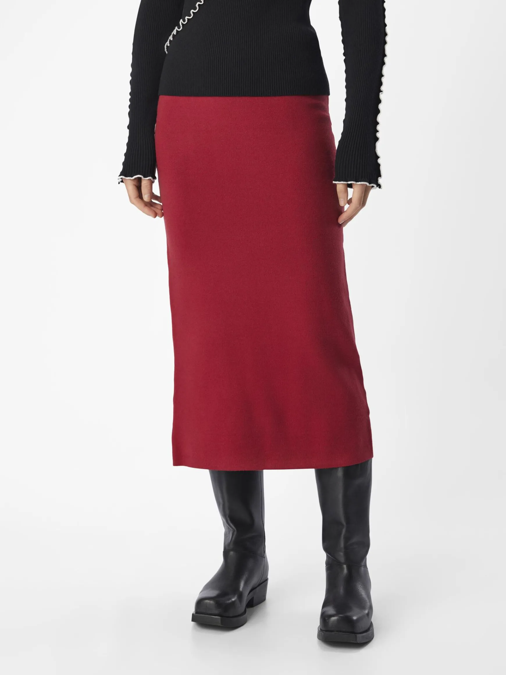 – Strikket maxinederdel- Høj talje- Ribbede kanter- Lille slidsdetalje- Almindelig pasform- Fremstillet med mere ansvar…