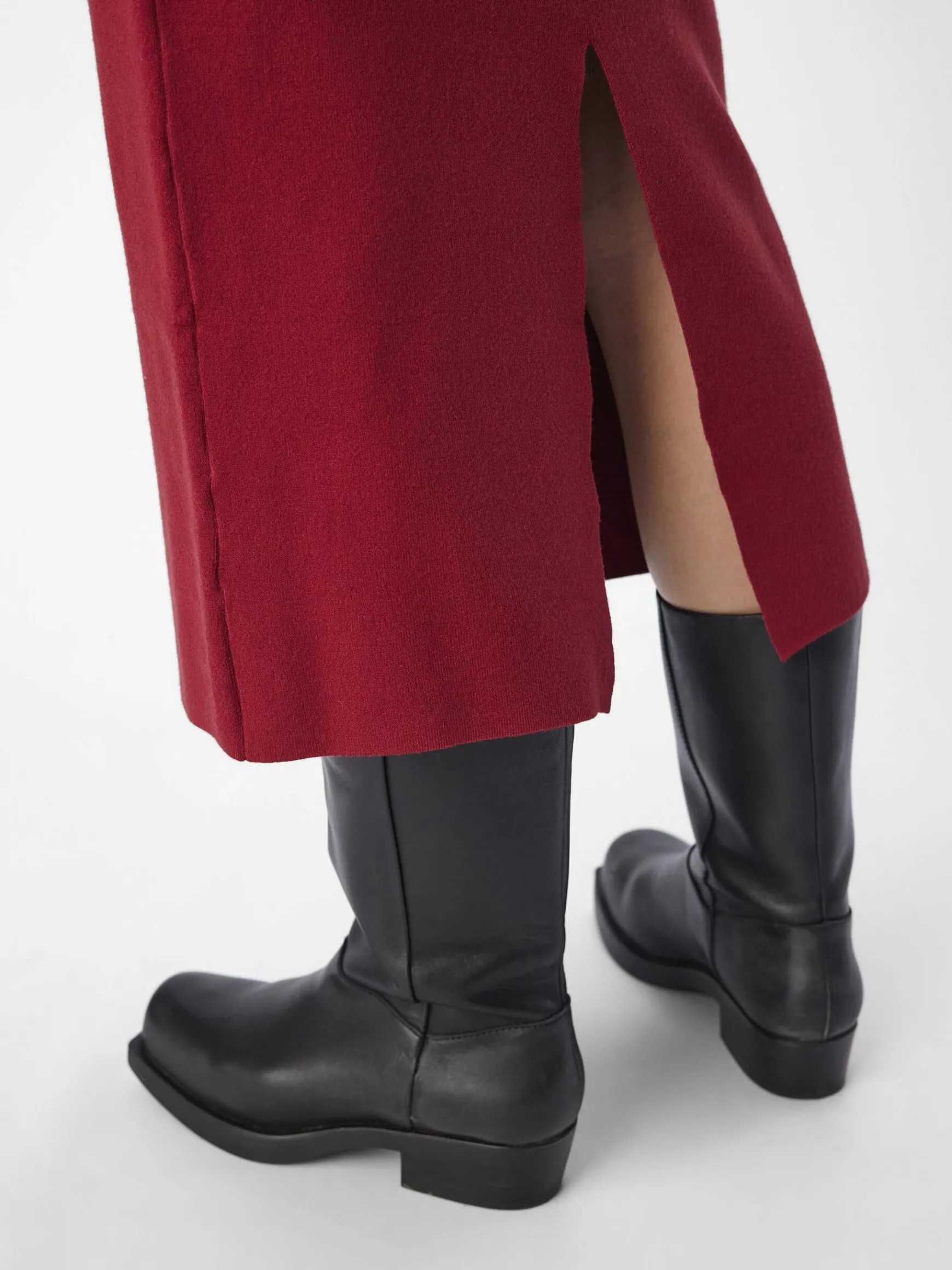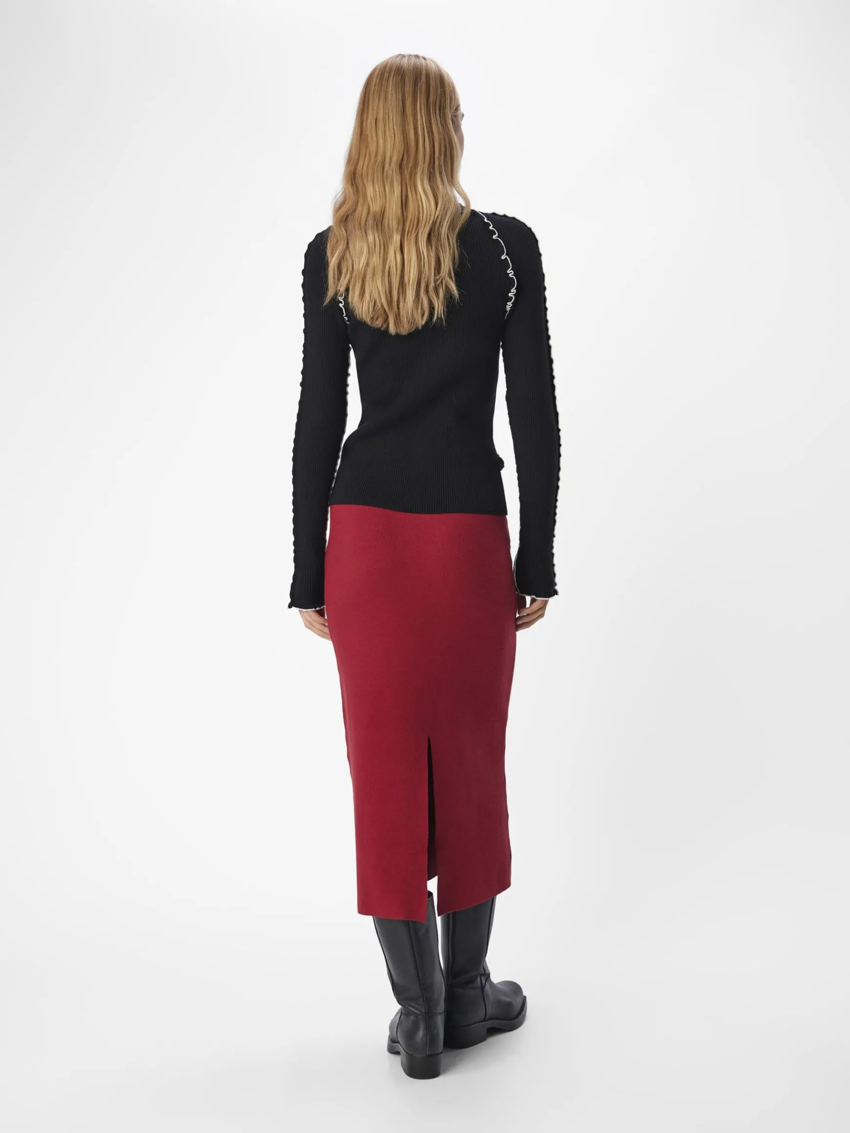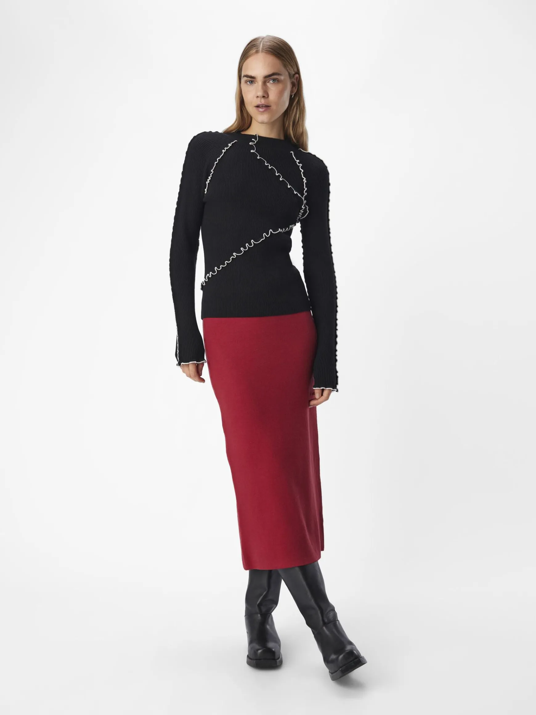 – Strikket maxinederdel- Høj talje- Ribbede kanter- Lille slidsdetalje- Almindelig pasform- Fremstillet med mere ansvarligt stof