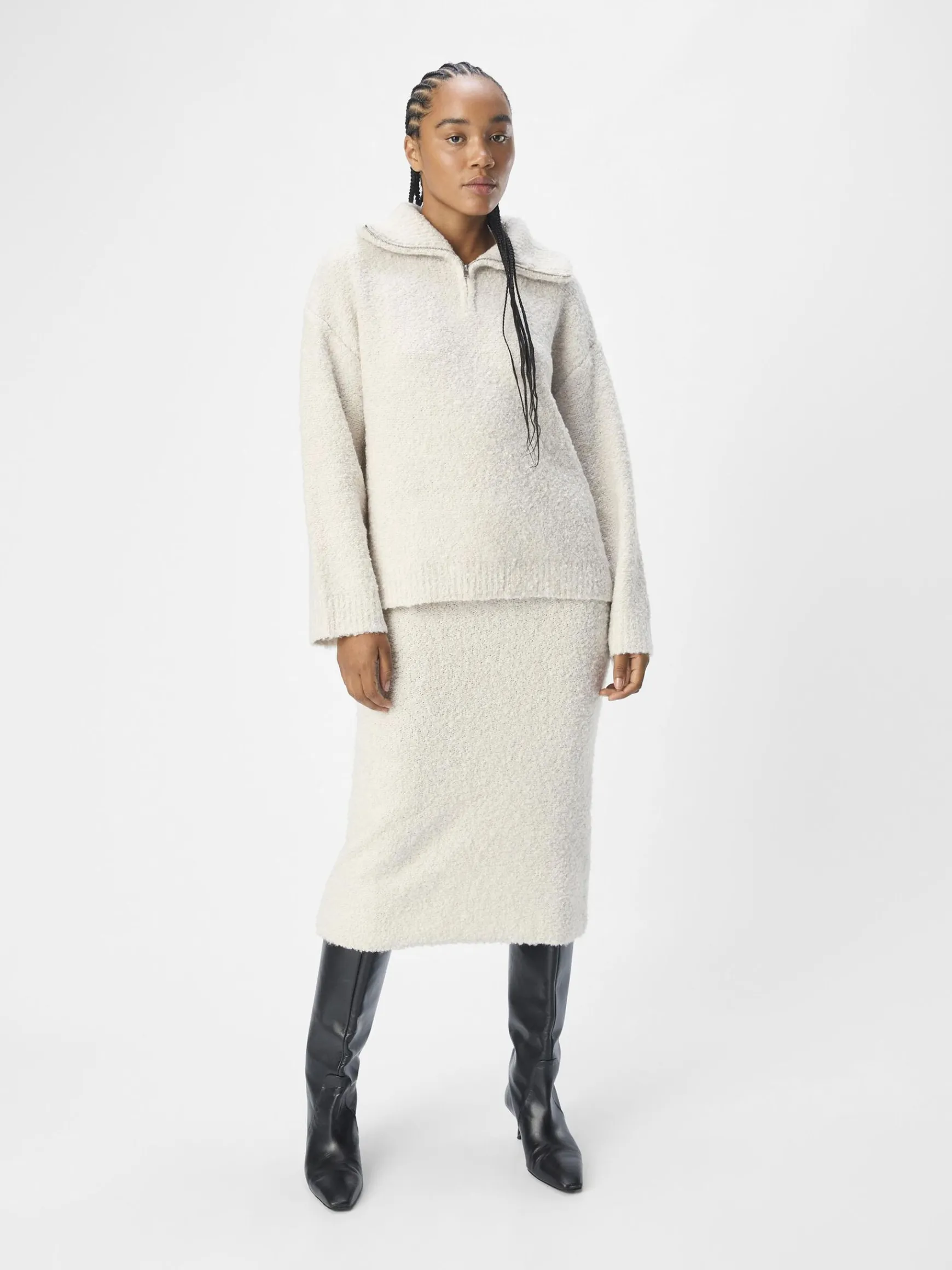 – Strikket midinederdel i uldblanding- Høj ribbet talje- Fluffy tekstur- Almindelig pasform