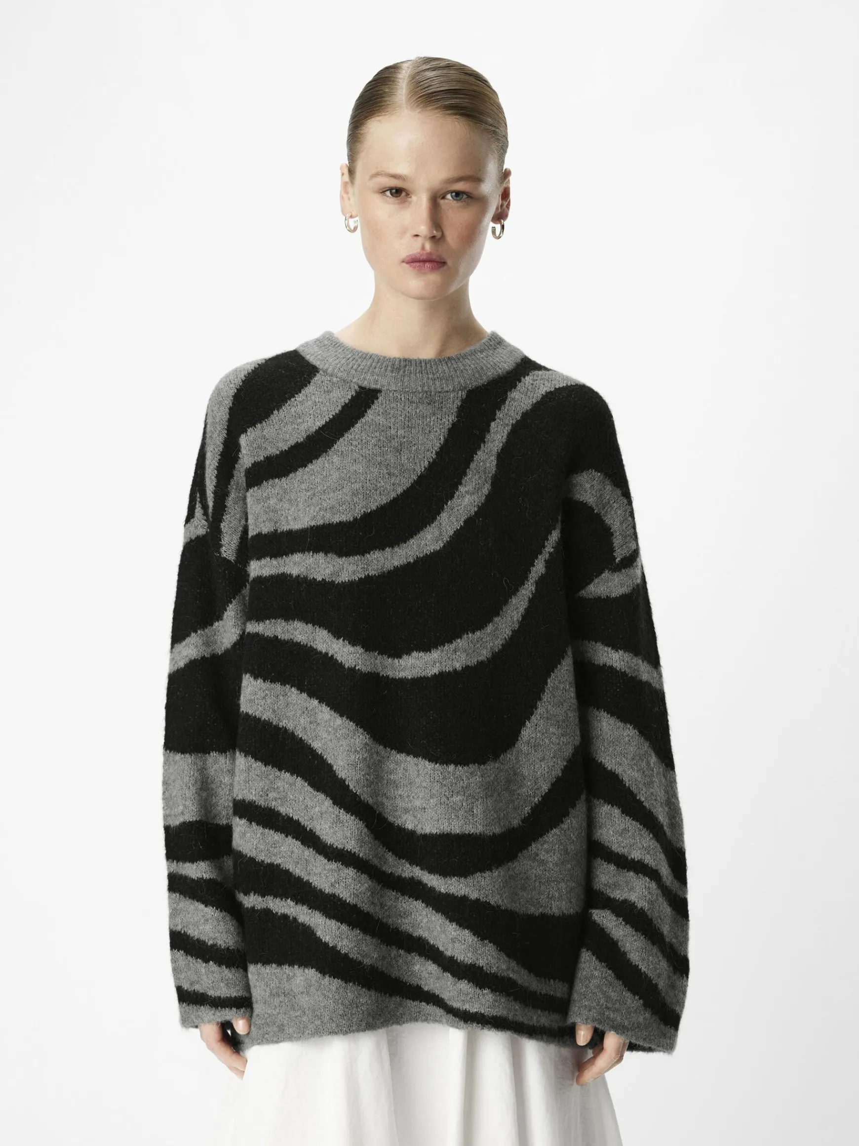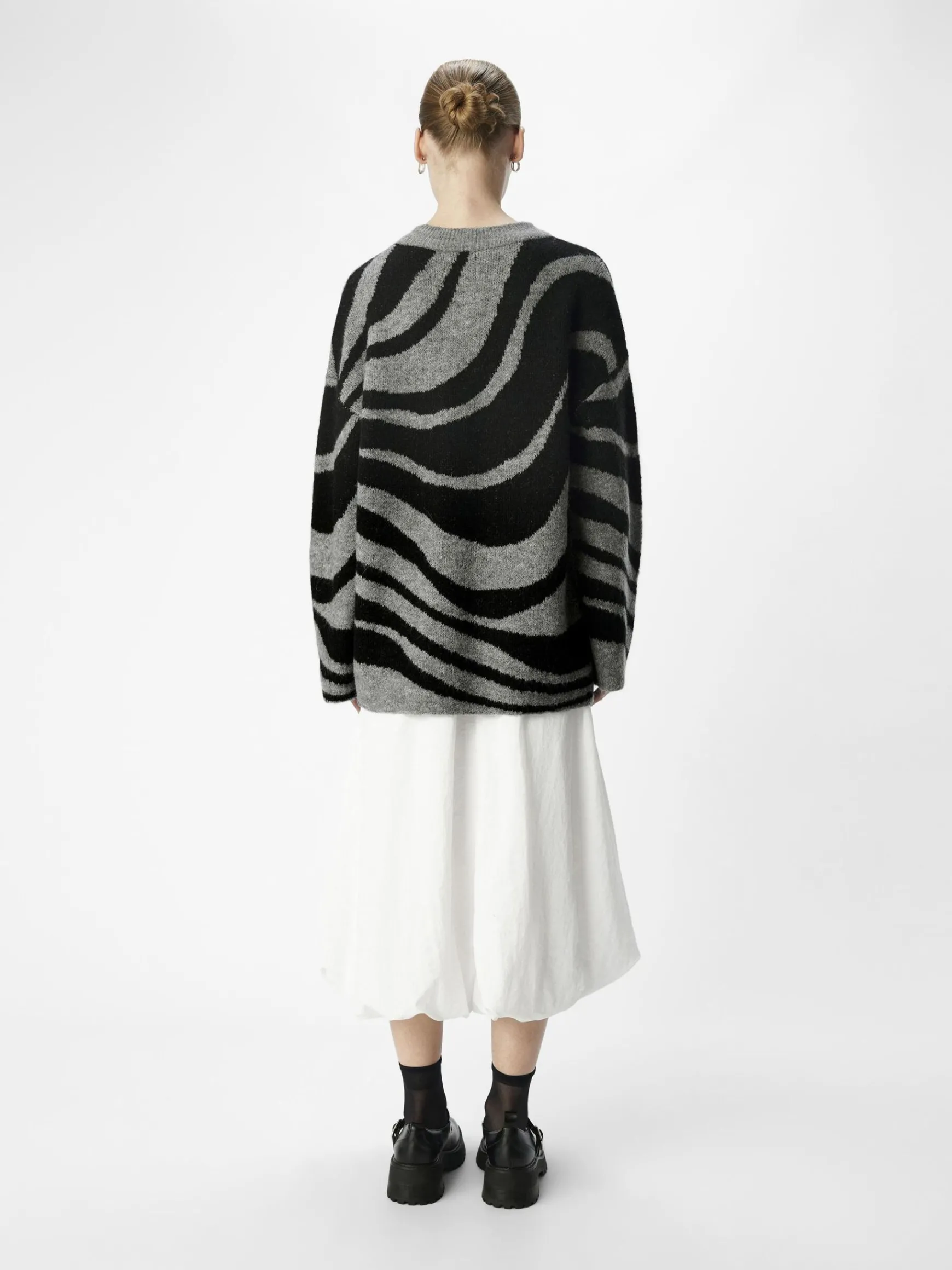 – Strikket trøje med all-over intarsia-design- Rund halsudskæring- Sænkede skuldre- Lange ærmer- Løs pasformINDEHOL…