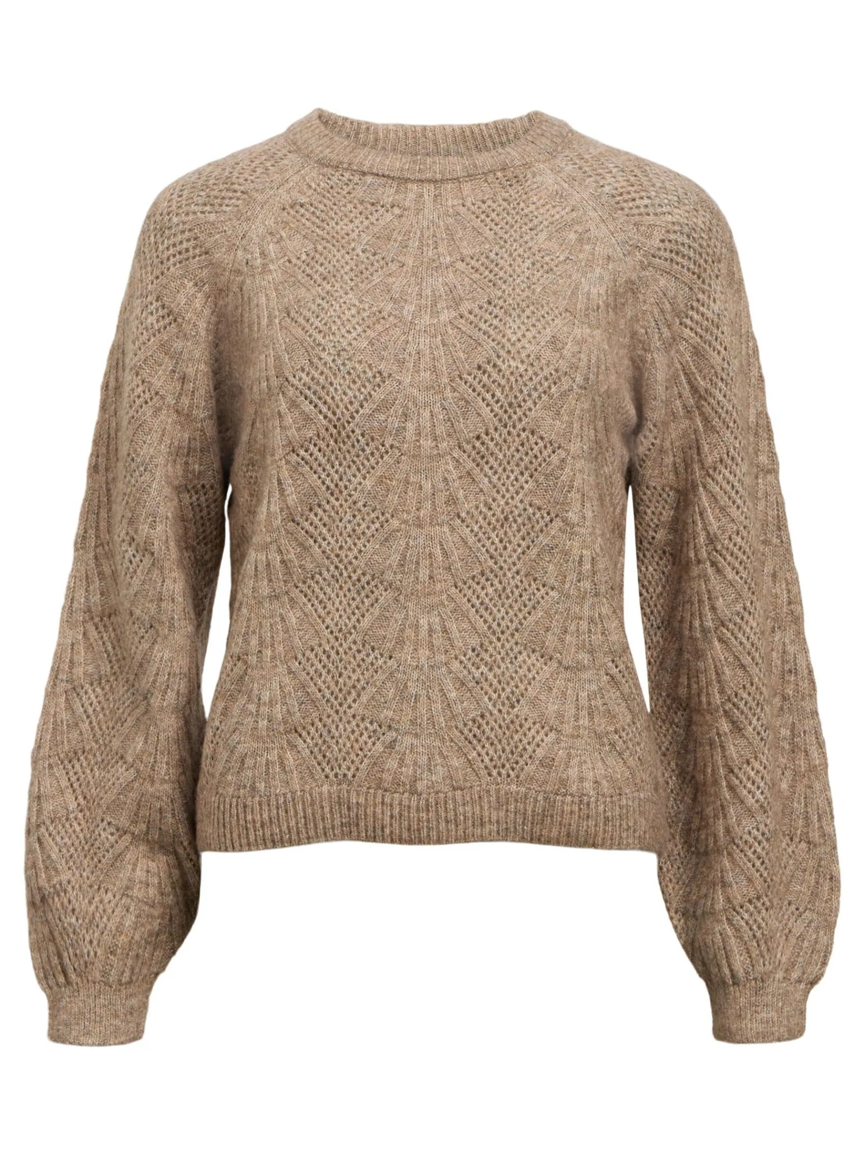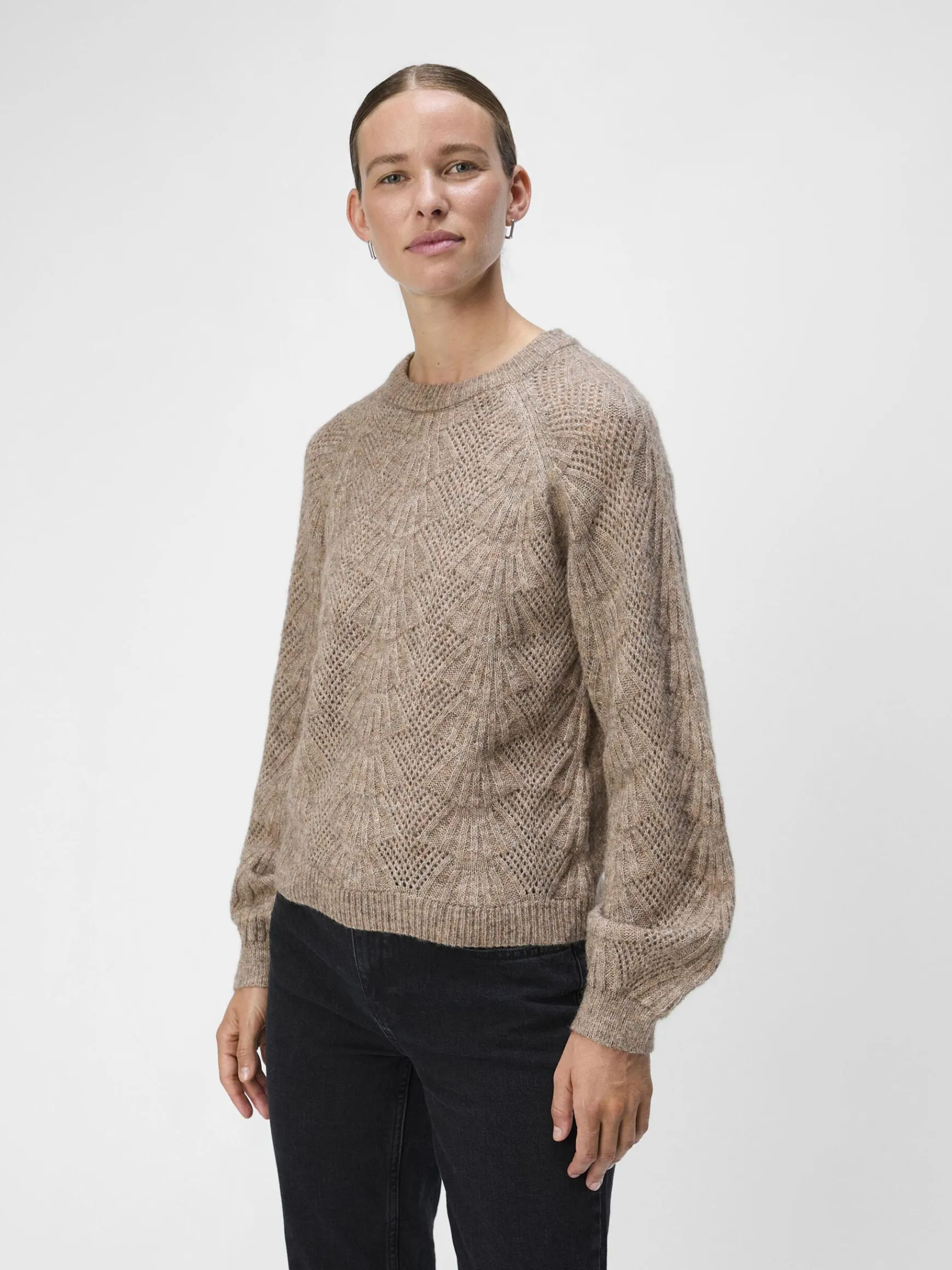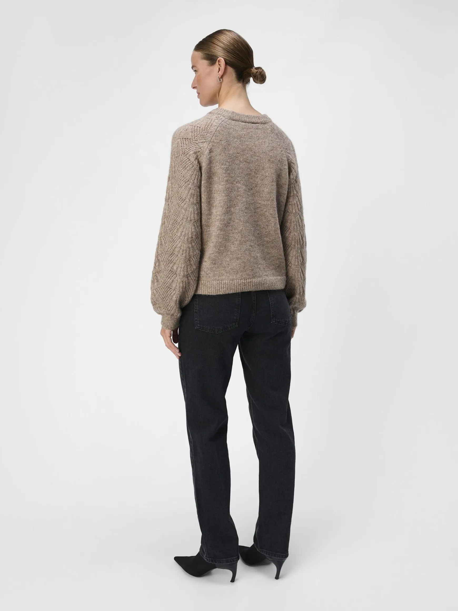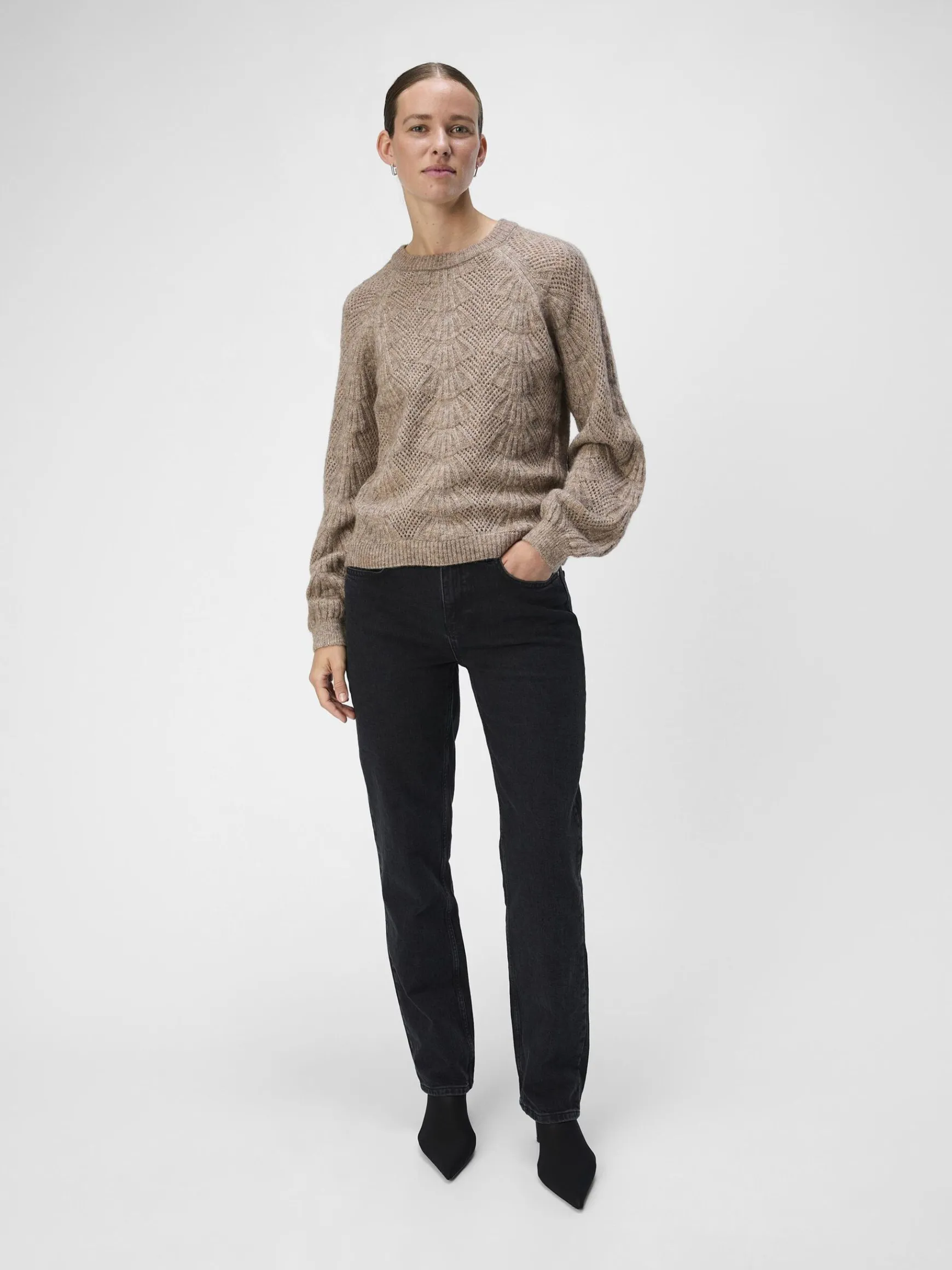 – Strikket trøje – V-hals- Raglan-skuldre- Lange voluminøse ærmer- Mønstret strik- Regular fit- Modellen er iført størrelse 36