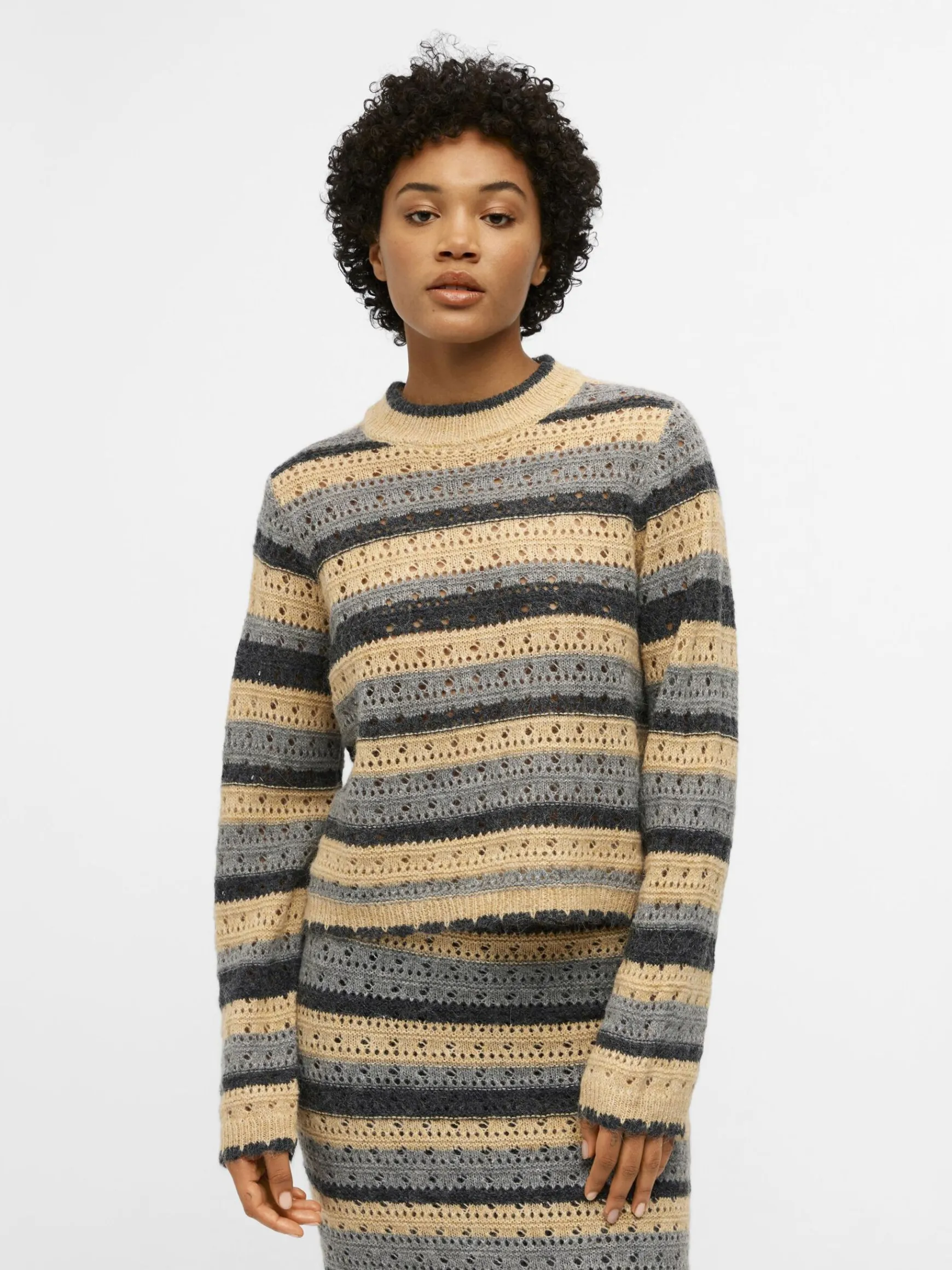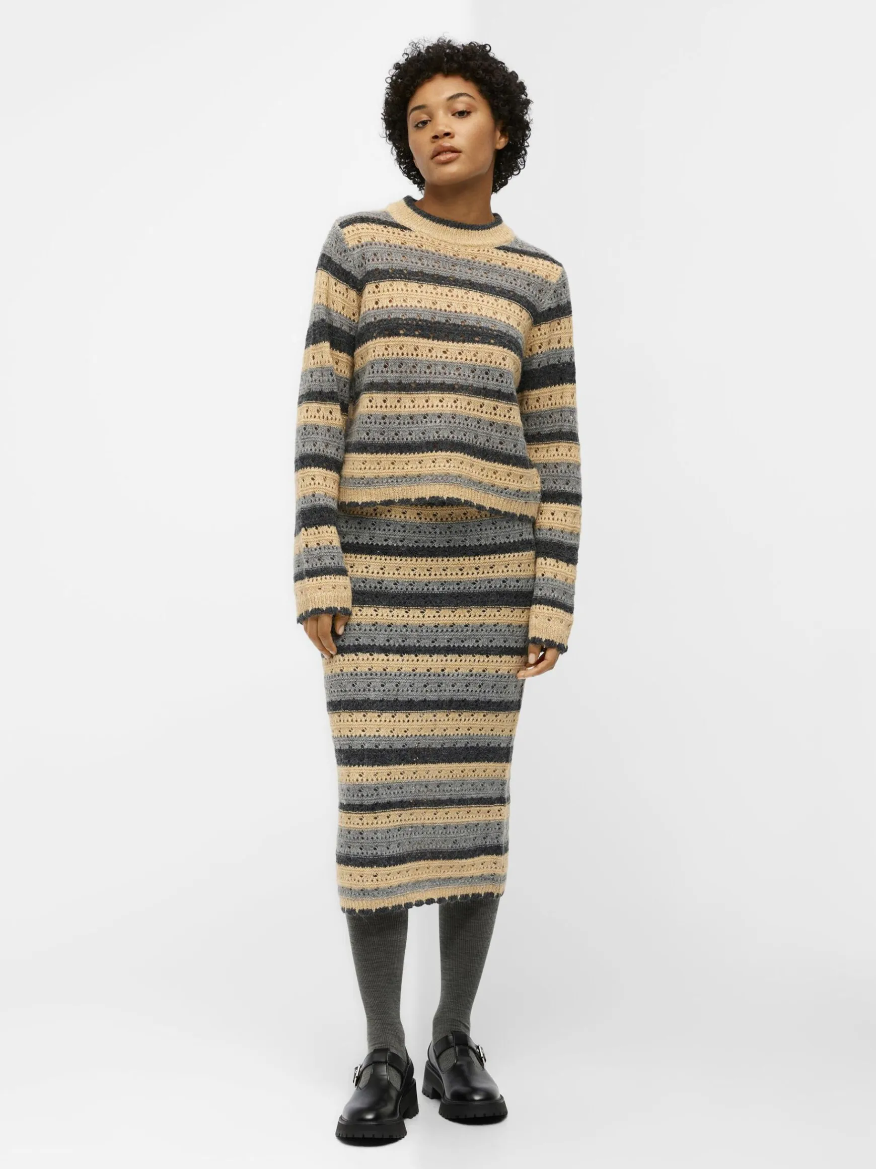 – Trøje i alpacauldblanding- En del af et matchende sæt- Stribet design- Detalje med nåledråbe- Bølgekant- Rund halsudskæring- Lange ærmer med sænkede skuldre- Regular fit- Fremstillet med mere ansvarligt stof