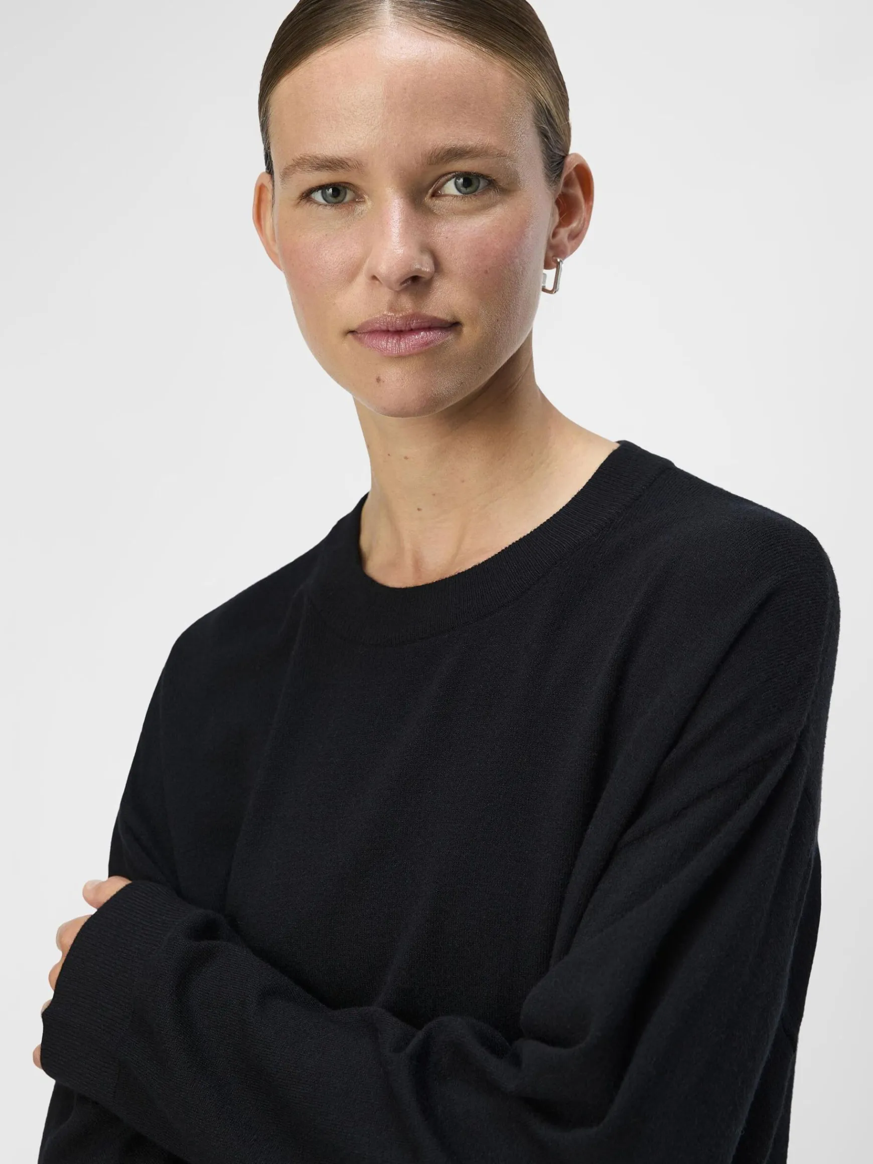 – Klassisk strikket trøje- Rund halsudskæring- Sænkede skuldre- Lange ærmer- Ribbede kanter- Oversized fit