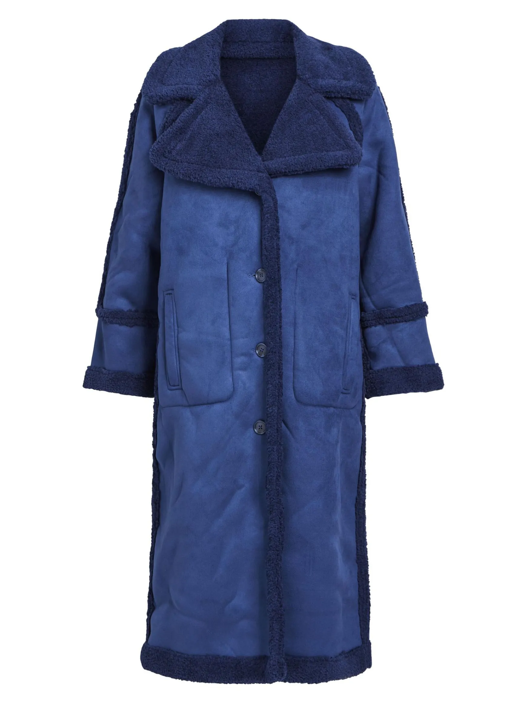 – Jakke i imiteret ruskind med teddyfor- Spread-krave- Lange ærmer- Knapper foran- Forlommer- Longline-fit
