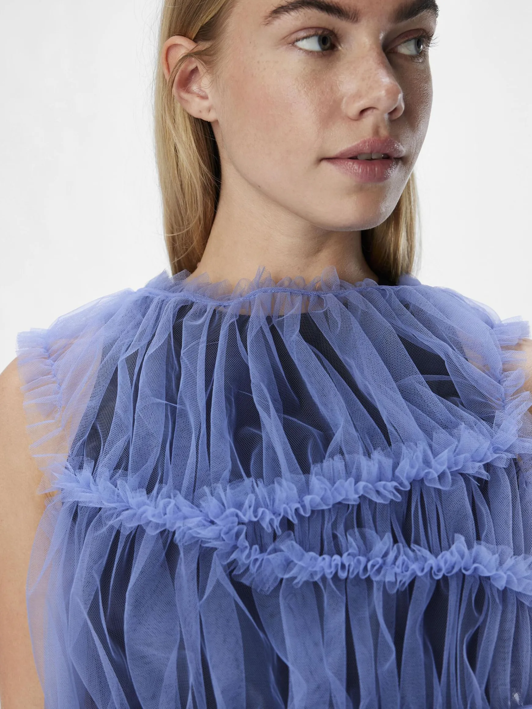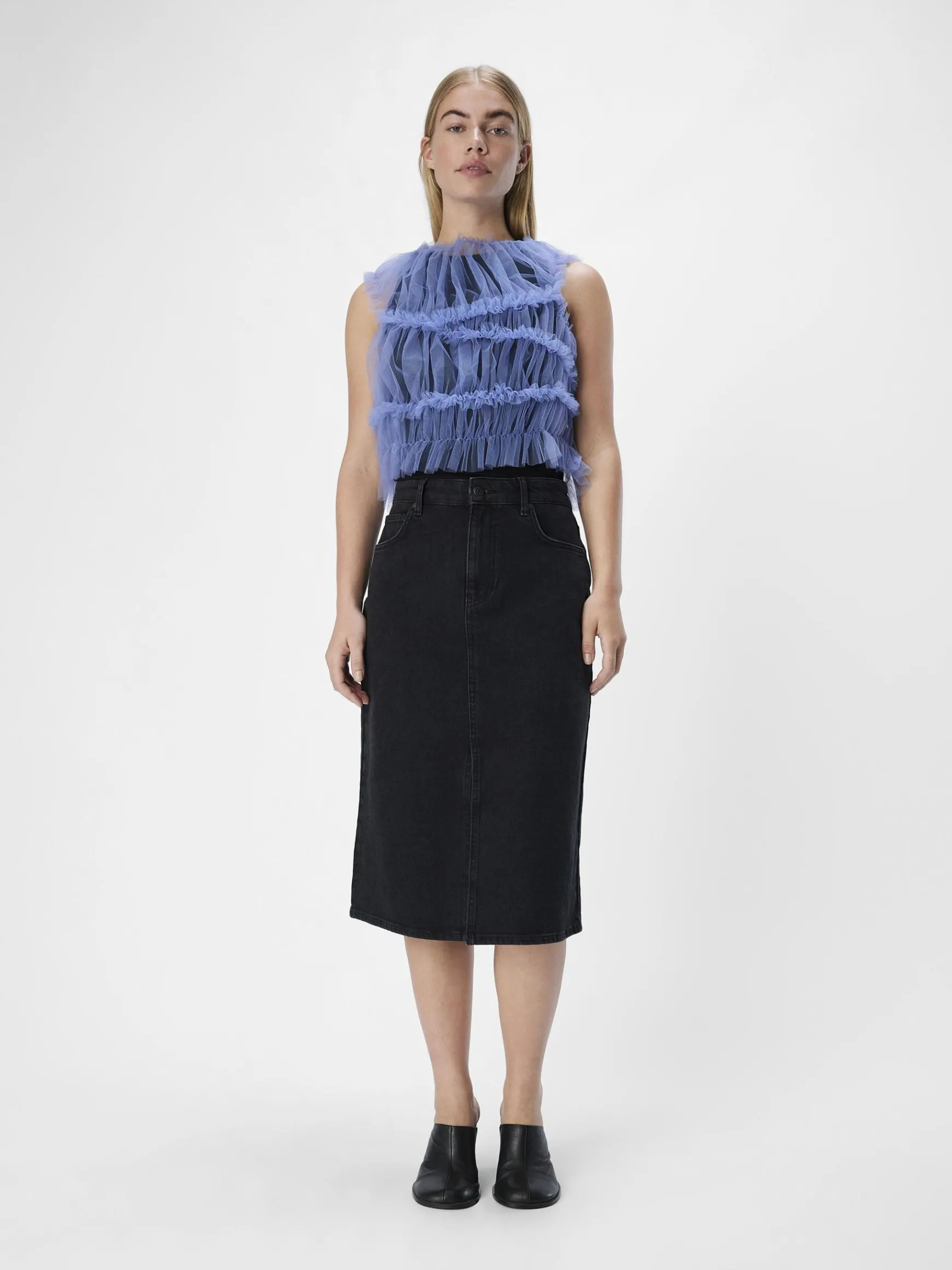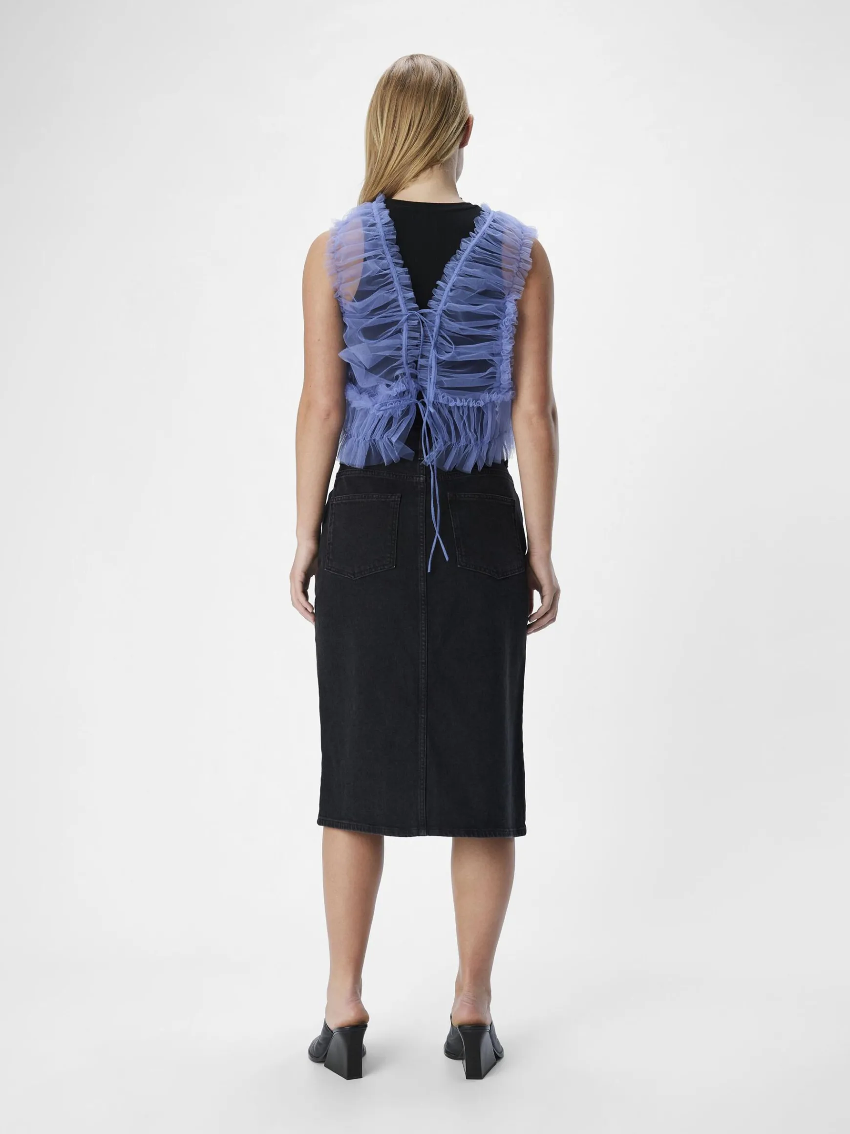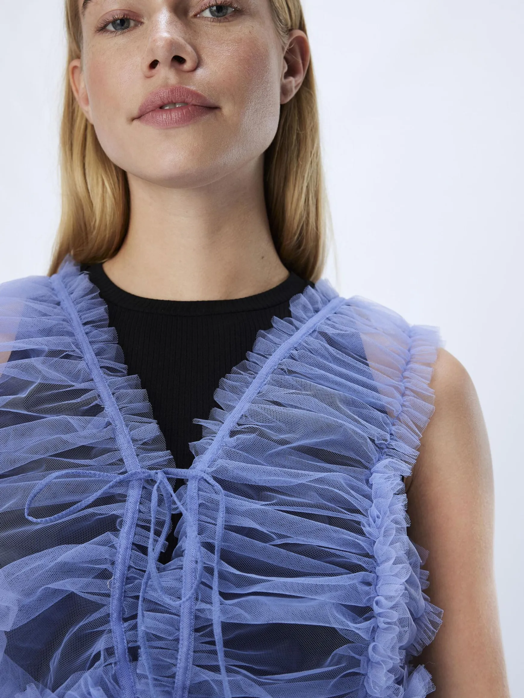 – Ærmeløs tyltop – V-hals- Bindelukning foran- All-over samlet effekt- Flæsekanter- Almindelig pasformStylenavn: OBJA…