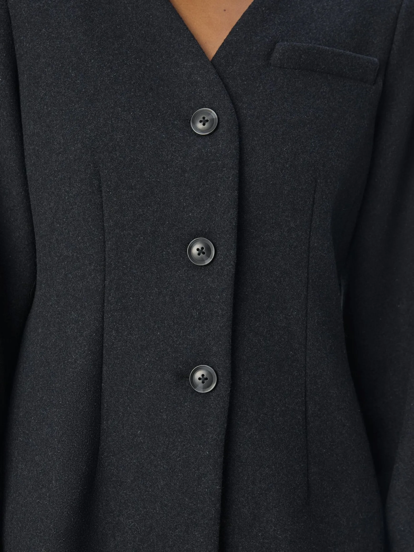 – Enkeltradet blazer med v-udskæring- Lange ærmer- Knapper foran- Brystlomme- Almindelig pasform