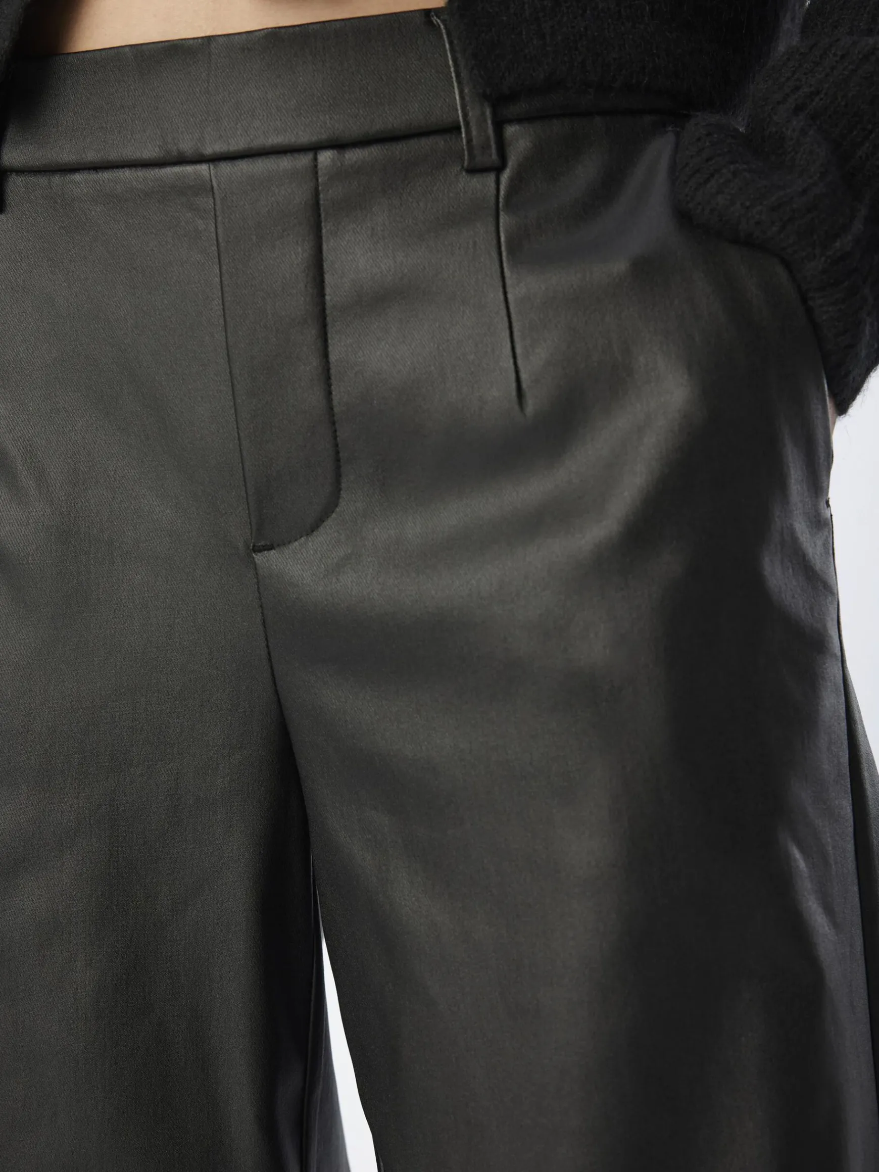 – Coatede wide-leg bukser- Høj talje- Bæltestropper- Almindelig pasform