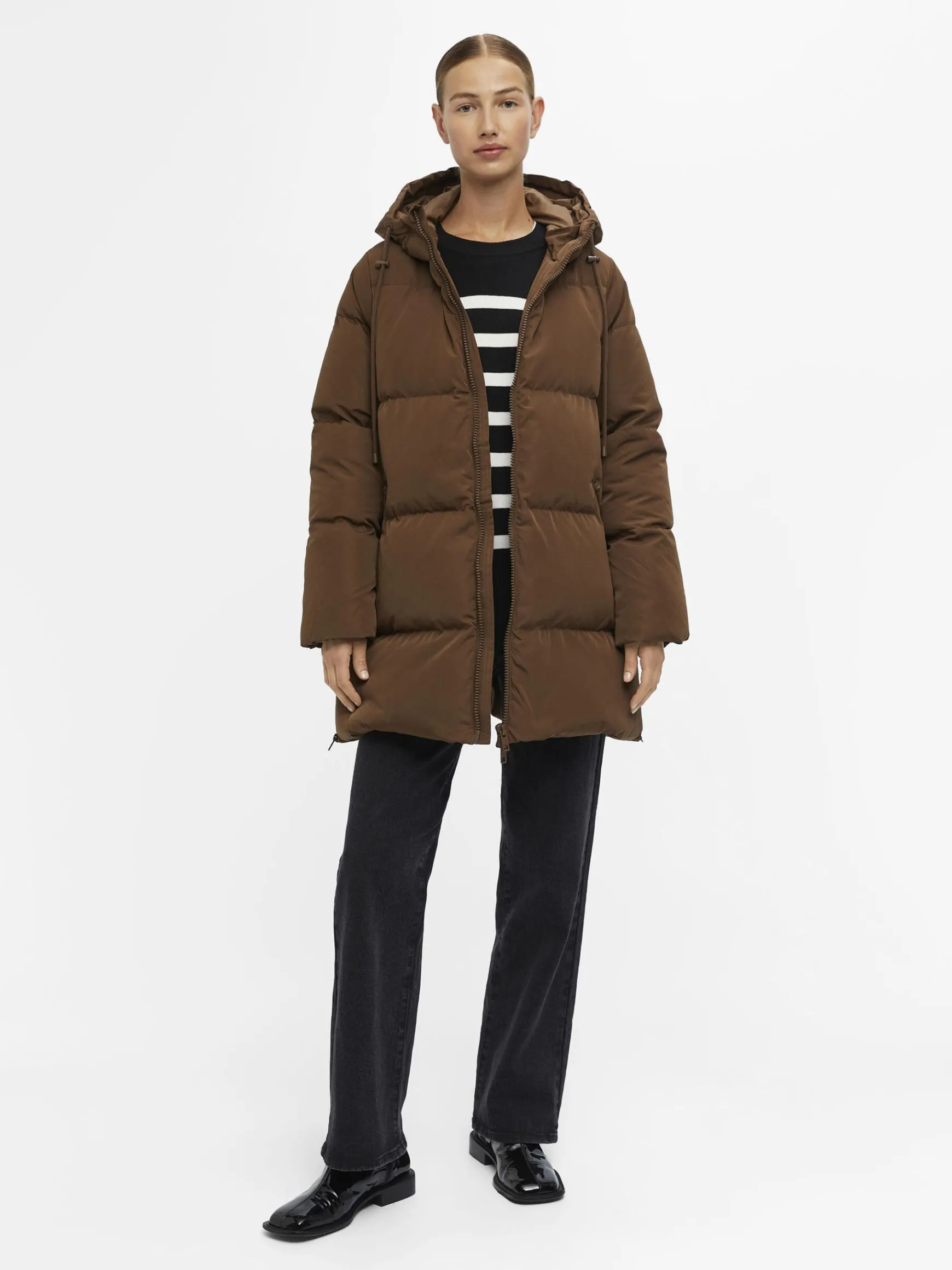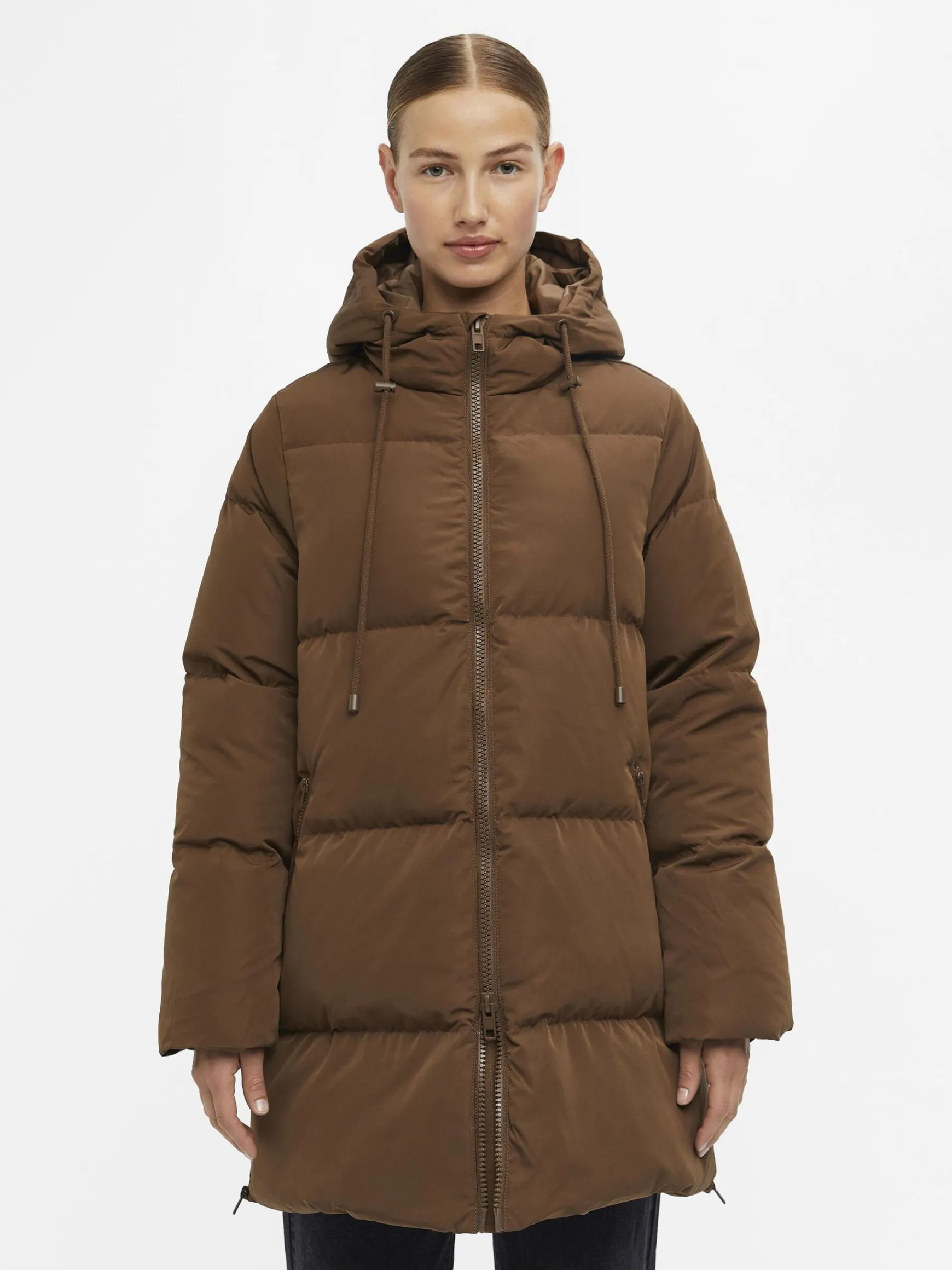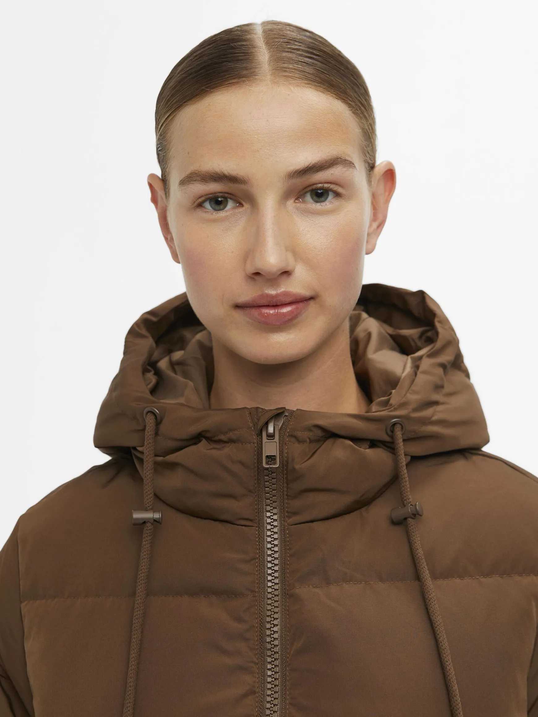 – Stor hætte med løbesnor- 2-vejs lynlås foran- 2x sidelommer med lynlås- Vatteret design- Dunfyld- Almindelig pasform- Modellen er iført størrelse 36- Fremstillet med mere ansvarligt stof