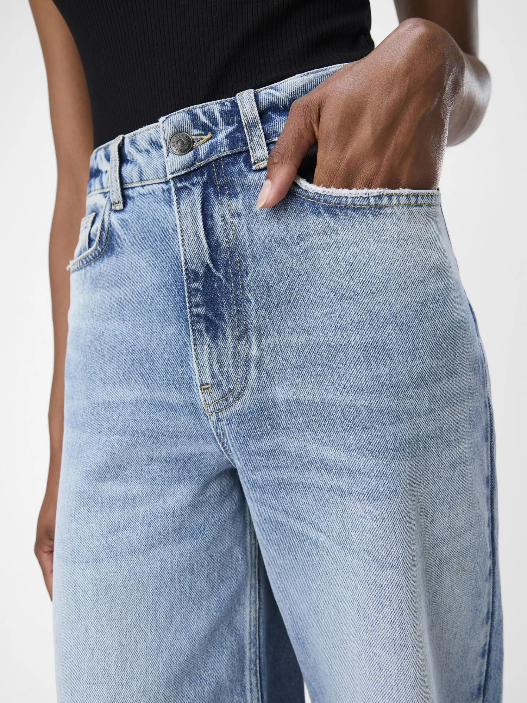 – Højtaljede loose fit jeans- Bæltestropper- Design med 5 lommer- Lynlåsgylp med nitteknaplukning- Falmet effekt- Løs pasform